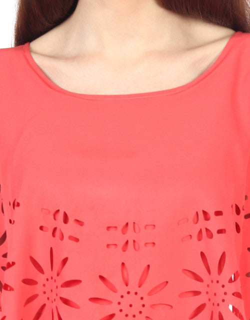Women Printed Round Neck Cotton Blend Pink T-Shirt